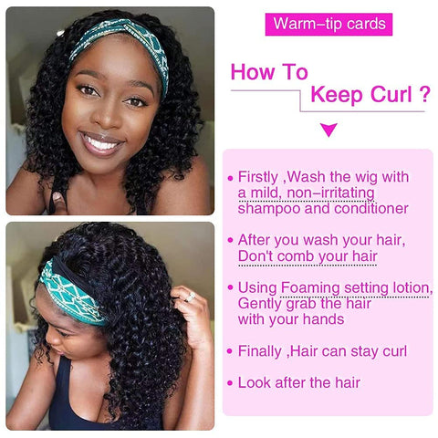 YUZHU Kinky Curly Headband Wig Human Hair Glueless Natural Color 18 Inch
